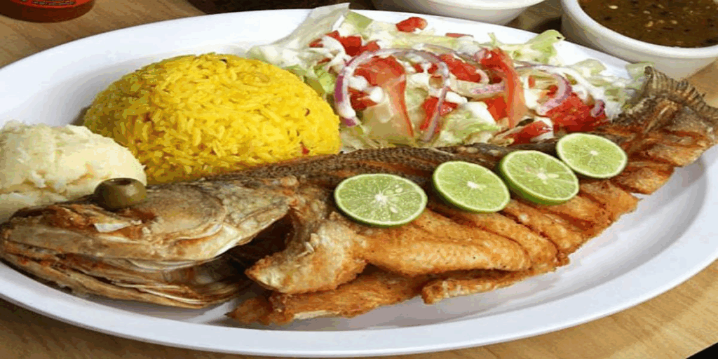 También, este plato se puede acompañar con el pico de gallo que preparaste previamente. Aparte, se puede preparar un arroz amarillo que es ideal para acompañar esta receta, así como unas papas fritas o una ensalada de lechuga con tomate y cebolla en rodajas. Ya que, es importante incluir unas rodajas de limón y se puede acompañar con unos plátanos maduros fritos o una ensalada de verduras para niños.