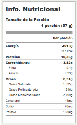 Información Nutrimental y su tabla de pescado frito